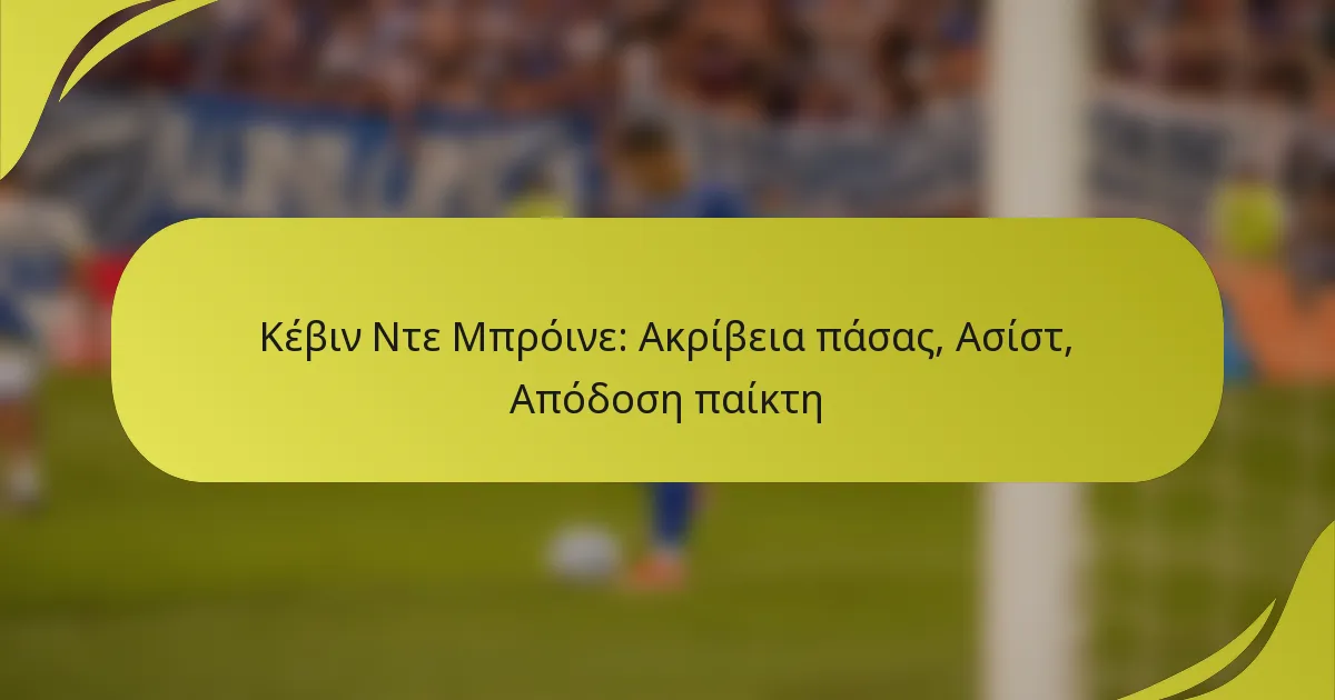 Βασικές μετρήσεις για την αξιολόγηση της απόδοσης του Κέβιν Ντε Μπρόινε περιλαμβάνουν την ακρίβεια στις πάσες, τον συνολικό αριθμό ασίστ και τις συνολικές του συμβολές στο παιχνίδι. Αυτές οι μετρήσεις παρέχουν πληροφορίες για την αποτελεσματικότητά του στο γήπεδο και την επίδρασή του στην επιτυχία της ομάδας.